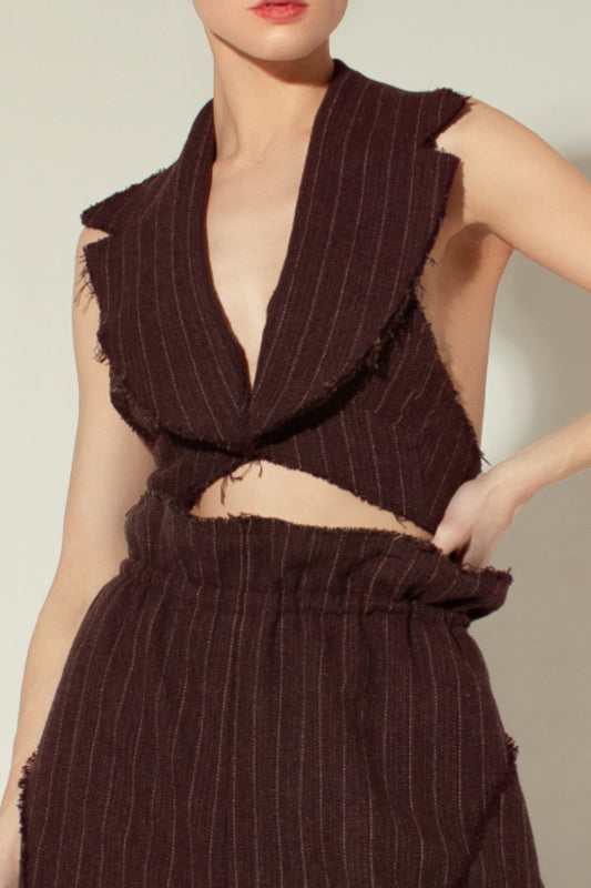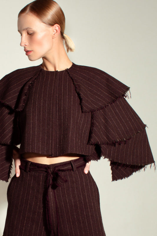 The capsule collection Coastal Fringe unfolds as a visual meditation on the meeting point between land and sea — where nature’s force shapes the shoreline, and classical tailoring meets the raw, unfinished edge.