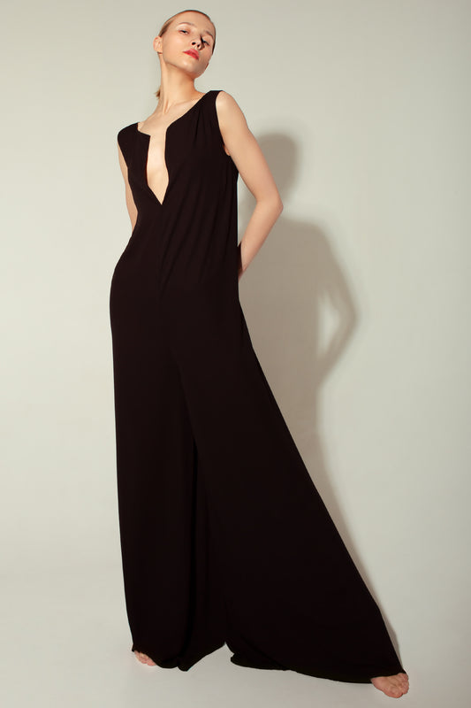 Langer schwarzer Jumpsuit aus Crêpe-Chiffon