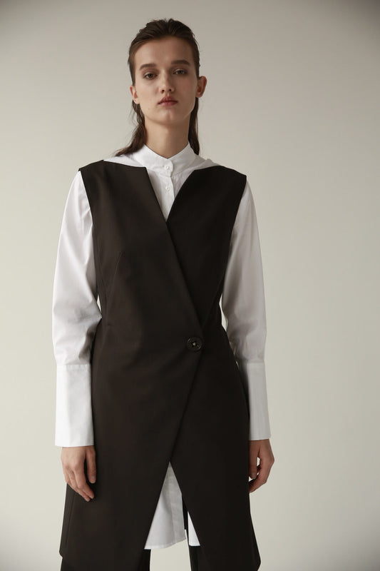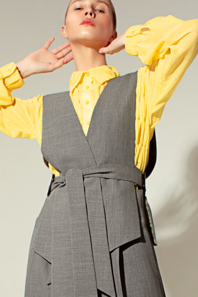 Asymmetrische Weste aus Seide und Wolle mit Gürtel