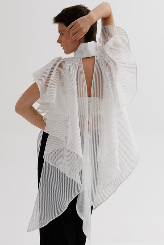 Asymmetrische, transformierte Plissee-Chiffonbluse