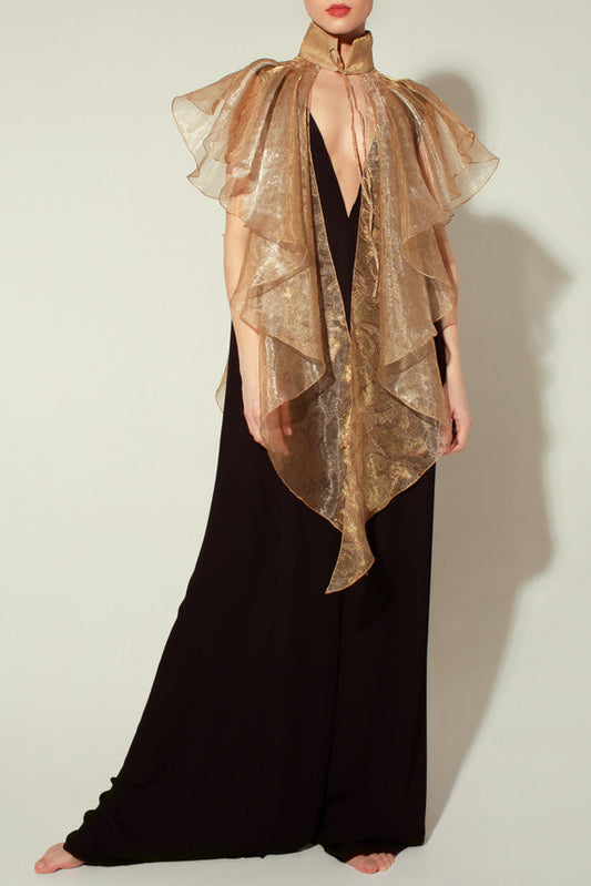 Rollkragenpullover aus Organza-Jacquard mit Rüschen