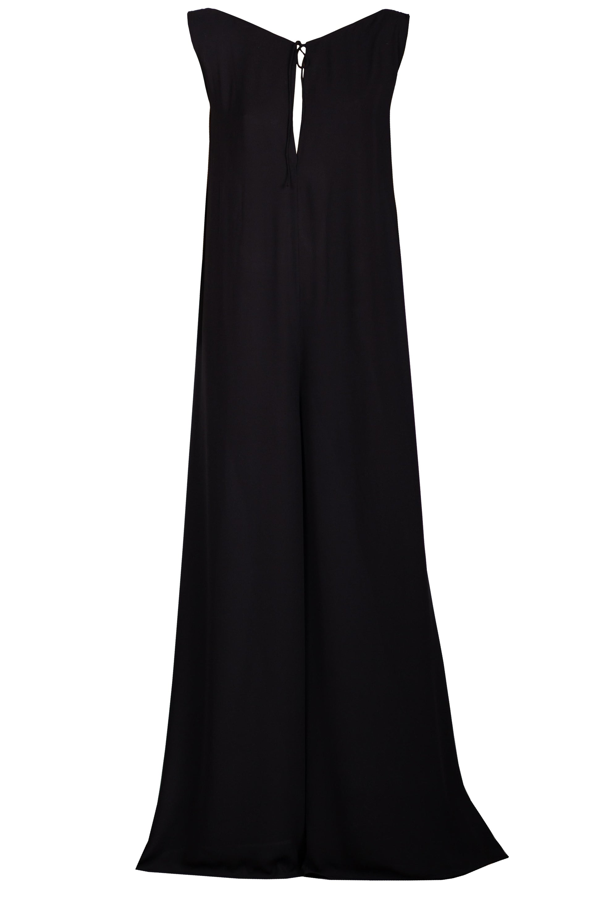 Langer schwarzer Jumpsuit aus Crêpe-Chiffon