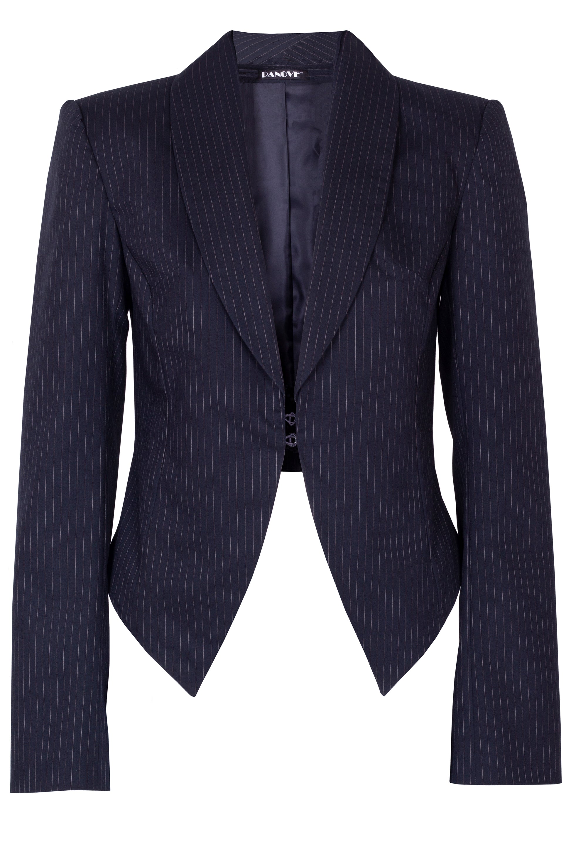 This short shawl collar jacket is designed for a bold and confident look. Crafted from a dense cotton fabric with a thin stripe, it combines classic elegance with modern trends. The fitted silhouette emphasises the waistline and the minimalist design allows you to create stylish combinations for both business meetings and evening outings.