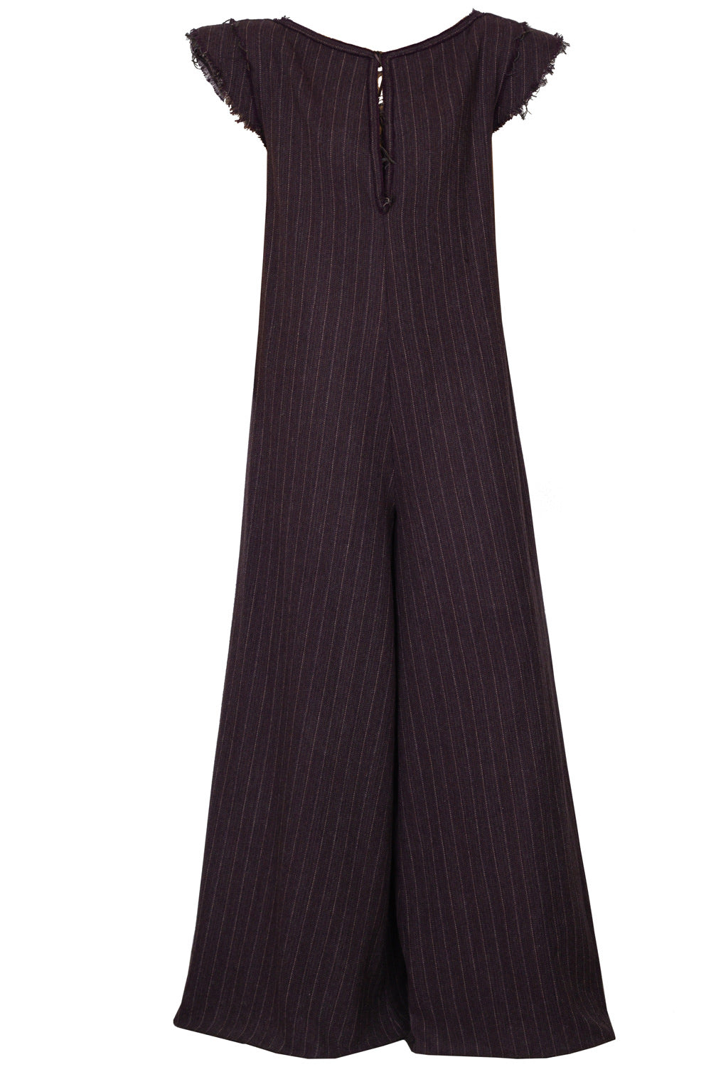 This jumpsuit is crafted from soft melange wool with a subtle pinstripe pattern. The upper part features a deep V-neckline, which lends elegance to the garment and is perfect for layered styling.