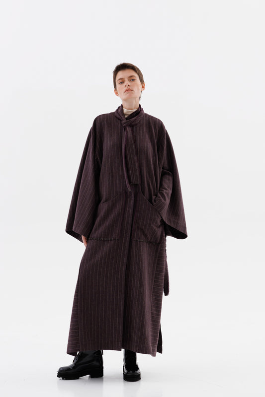 Вовняна накидка в тонку смужку з необробленними краями деталями